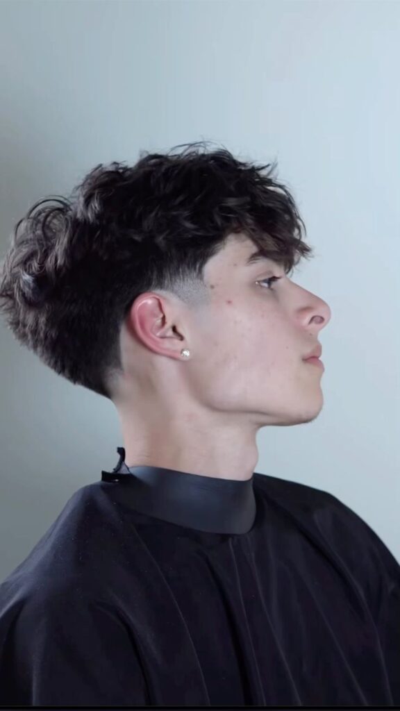 The burst fade is less common than standard fades, which makes it a solid choice if you want something distinct without being weird. The fade “bursts” in a semicircle around the ear, creating a rounded shape that tapers down behind the ear while leaving more length toward the back of the head.